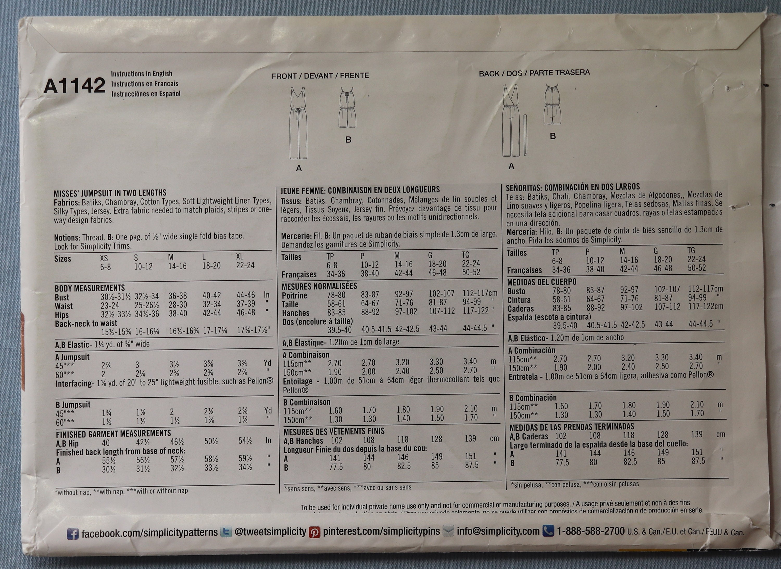 Simplicity 1142 It S So Easy Misses Jumpsuit In Two Lengths